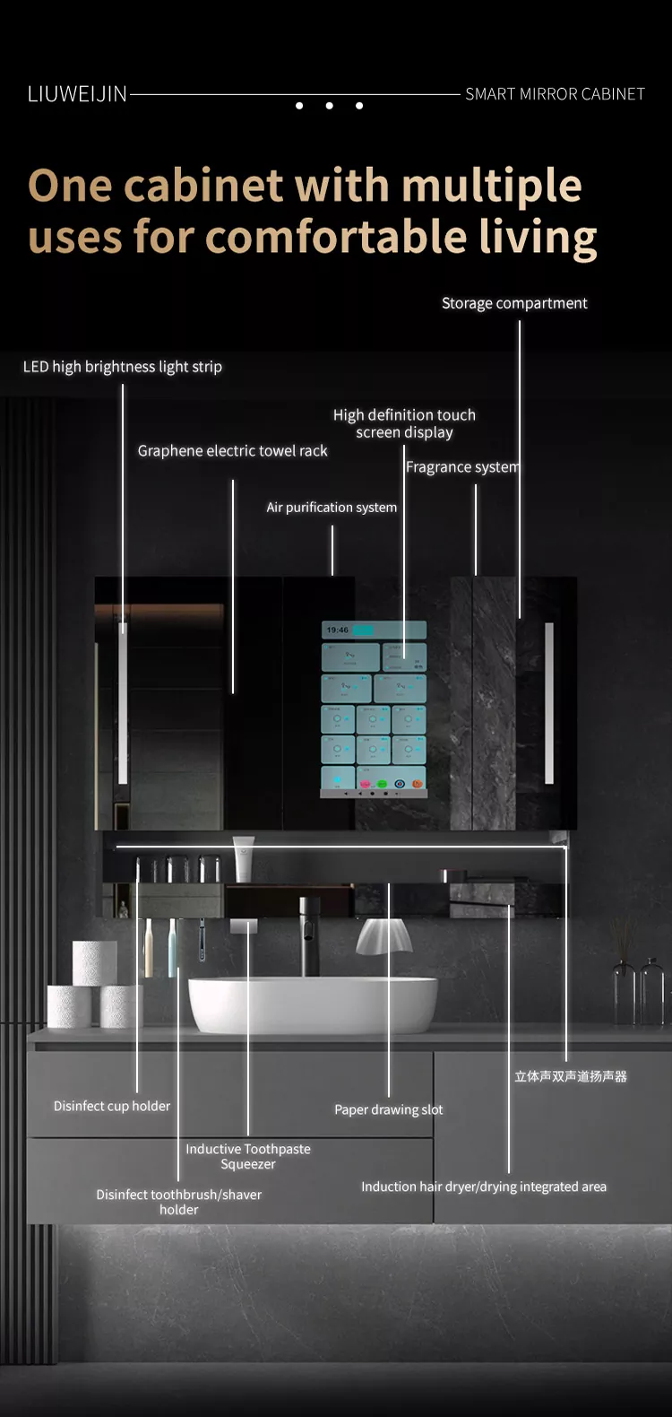 Liuwei Jinshi Graphene Graphene Intelligent Bath Mirror ตู้ทำให้วิธีการซักง่ายขึ้นของคุณทำความสะอาดห้องน้ำและความสดใหม่และชีวิตที่สะดวกยิ่งขึ้น